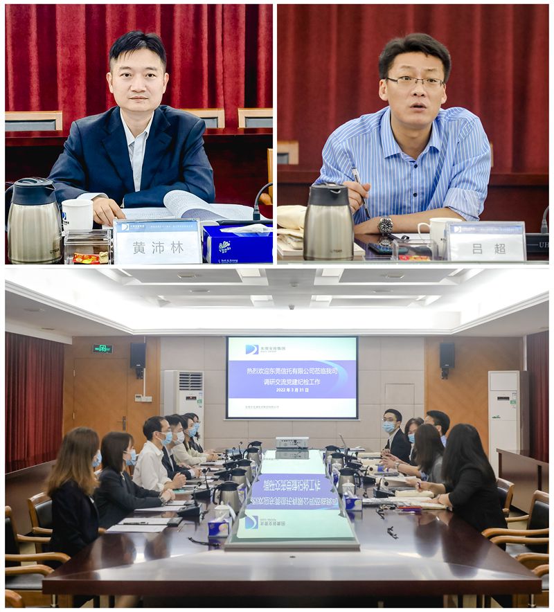 3月31日上午,東莞信托黨委委員、紀(jì)檢監(jiān)察組組長呂超率隊蒞臨我司調(diào)研交流黨建、紀(jì)檢工作。集團(tuán)黨委副書記、紀(jì)委書記黃沛林參加活動。兩家公司的黨群、紀(jì)檢部門有關(guān)負(fù)責(zé)同志一同參加調(diào)研交流。