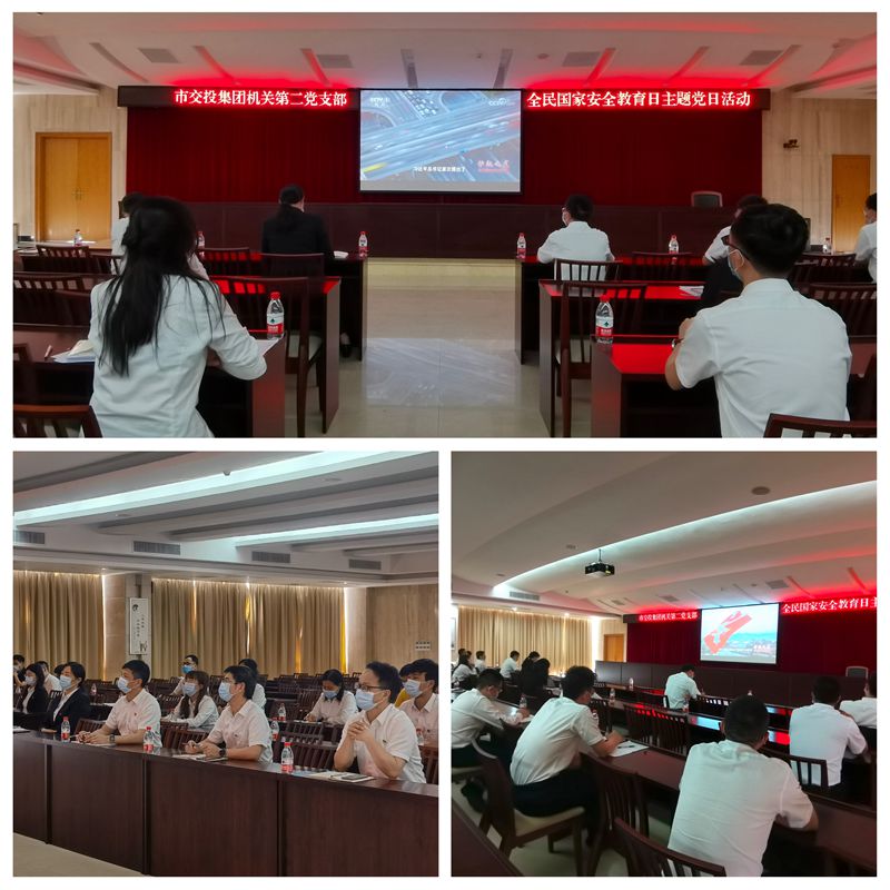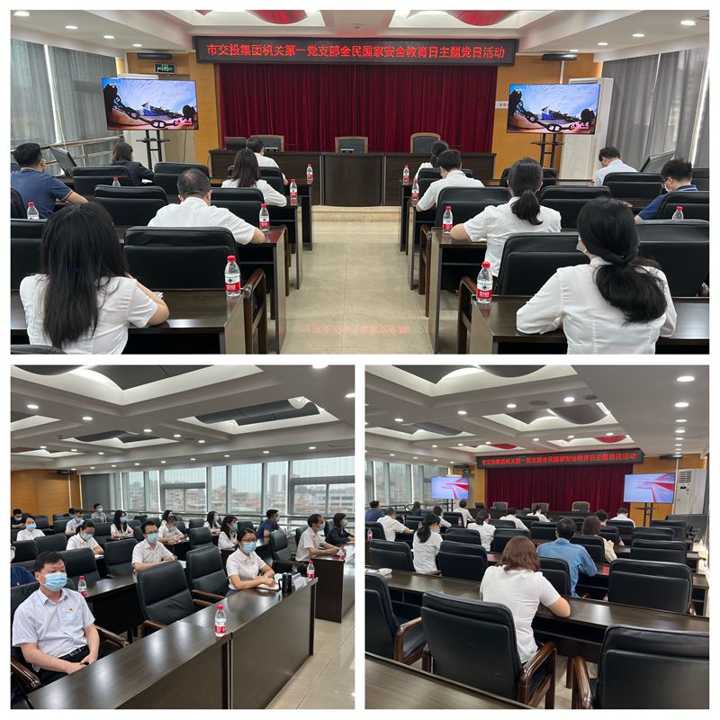 2022年4月15日上午,市交投集團機關第一、第二黨支部組織黨員開展全民國家安全教育日主題黨日活動,集中觀看《護航之道——總體國家安全觀縱橫》宣傳教育片。