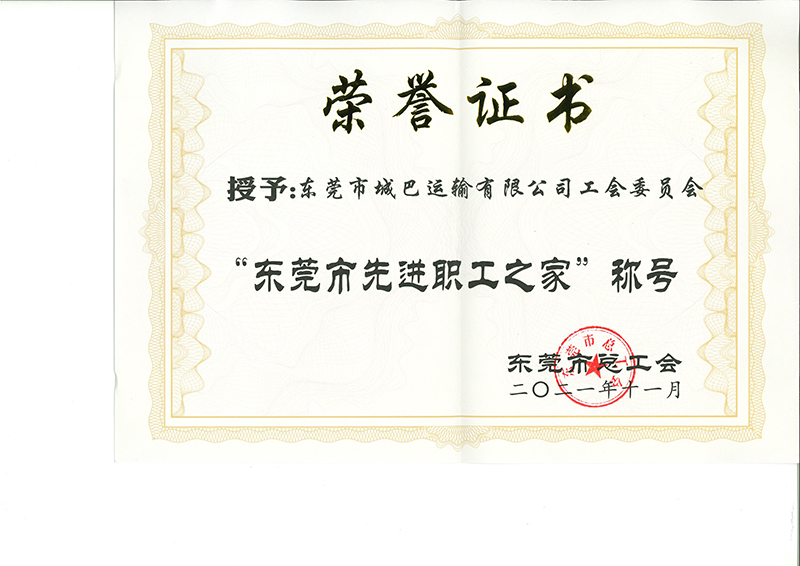 2021年11月,城巴公司工會委員會獲“東莞市先進(jìn)職工之家”榮譽證書