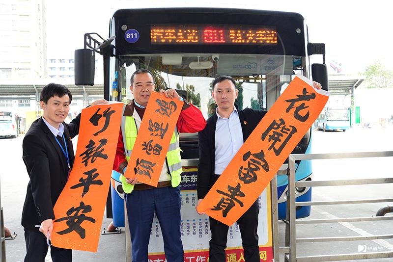 2019年1月21日,東莞巴士在汽車(chē)東站開(kāi)展迎新春送平安活動(dòng),向車(chē)長(zhǎng)及市民派發(fā)春聯(lián)