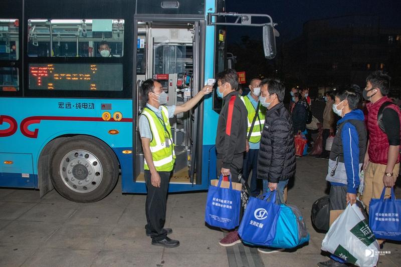 濱海灣公交公司接送湖北籍返莞專列,發(fā)車(chē)!