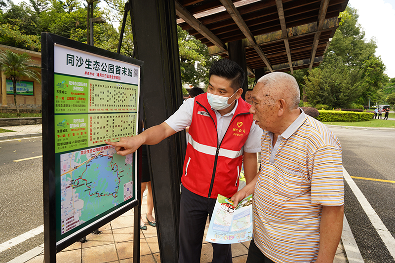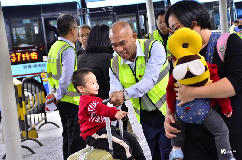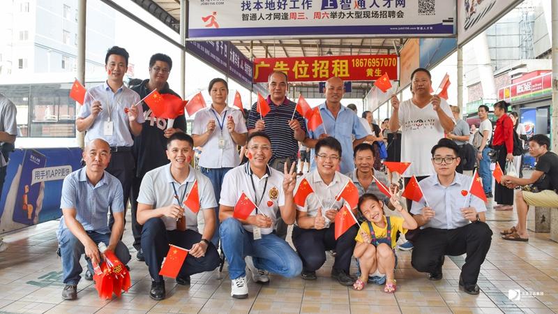 松山湖公交公司前往站場(chǎng)派發(fā)小紅旗,與乘客共度國(guó)慶。