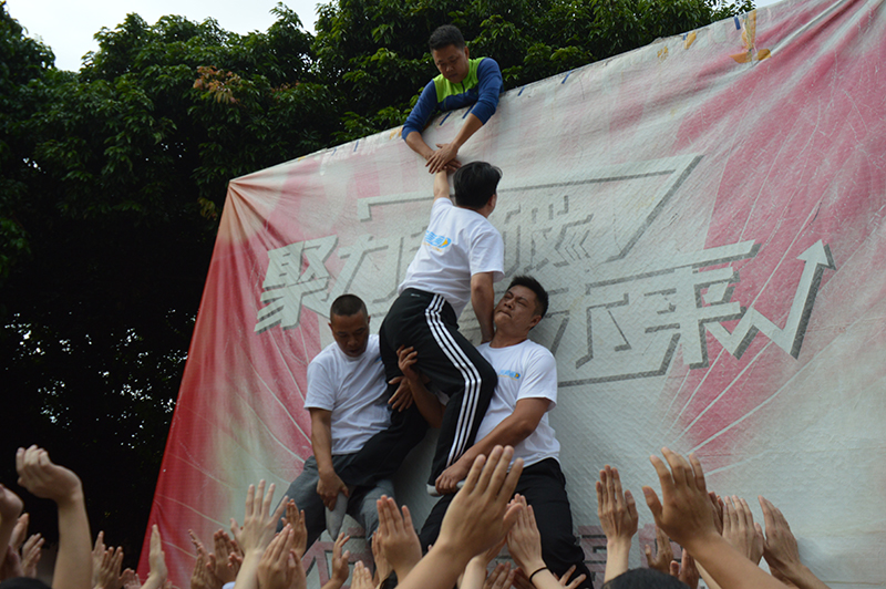 2017年11月4日,東莞通公司組織員工東莞大王洲開展戶外拓展活動之畢業(yè)墻