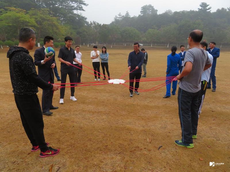 2015年11月24日,東莞控股公司開展戶外拓展活動,員工合作傳遞乒乓球。
