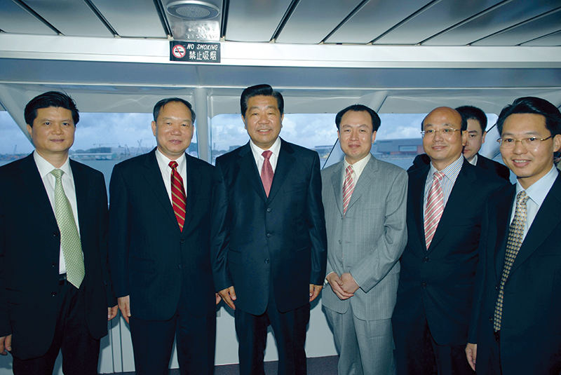 2006年6月29日時(shí)任全國(guó)政協(xié)主席賈慶林(左3)等國(guó)家領(lǐng)導(dǎo)人到香港參加“內(nèi)地與港澳經(jīng)貿(mào)合作發(fā)展論壇”期間,乘坐“太建”號(hào)客輪。