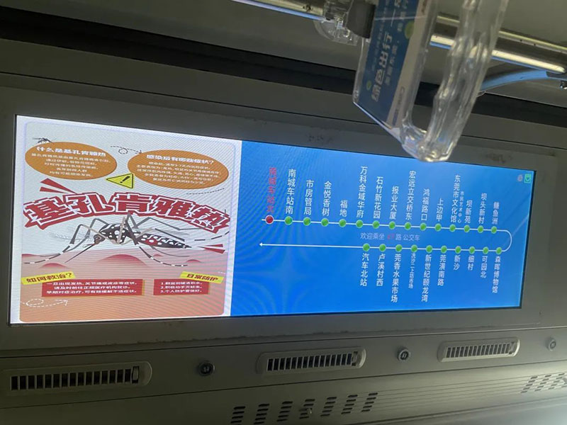 為提升市民自我防護能力,讓防蚊意識深入人心,東莞巴士充分發(fā)揮公交平臺優(yōu)勢,開展多層次宣傳。近一月來,在3712輛公交車顯示屏循環(huán)播放防控宣傳視頻,覆蓋中心城區(qū)及松山湖、濱海灣等多個重點片區(qū)。在各公交停場公告欄張貼科普海報,普及蚊媒疾病知識,營造全民參與、群防群控的良好氛圍。