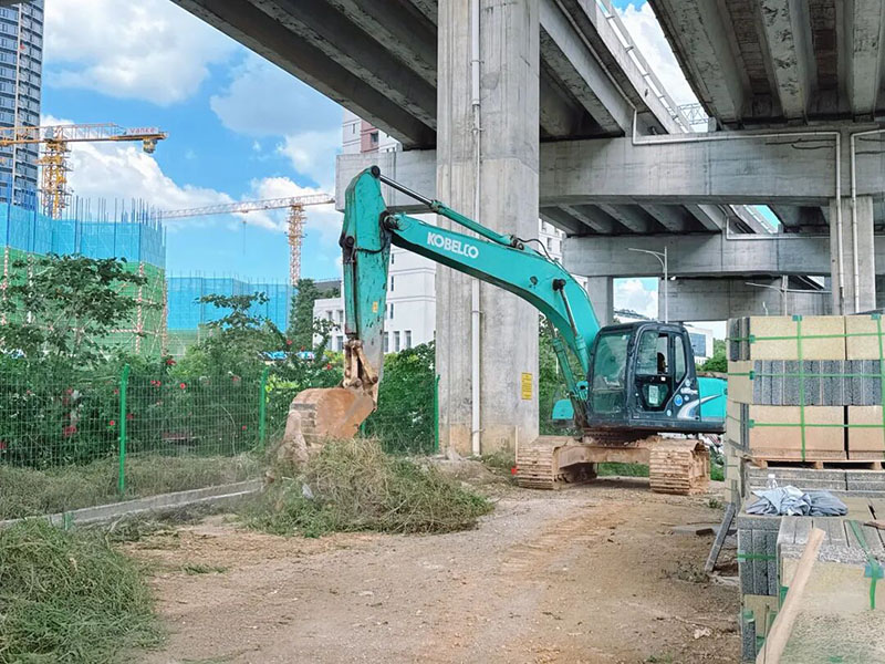 面對環(huán)境復雜的橋下空間,各施工隊伍執(zhí)行高效、有條不紊。針對較大面積的垃圾雜物,施工隊伍利用挖機、推土機、工程車等大型設(shè)備,高效清運土方、推平積水坑、鏟除雜草堆,從源頭切斷蚊蟲滋生的溫床;遇上機械設(shè)備不能進入的狹窄角落,隊員們就人工清撿垃圾、人工或無人機噴灑藥劑,每一處邊角都仔細消殺到位,確保無死角、無遺漏。