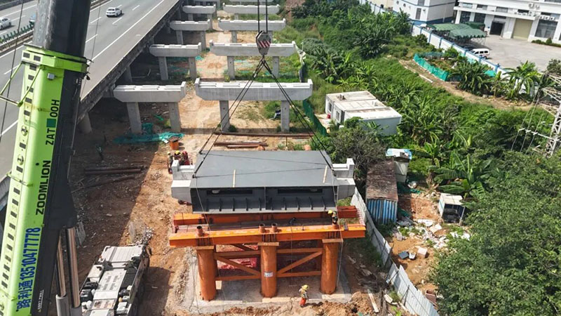 10月15日凌晨,正值華南地區(qū)旱季施工黃金期,隨著500噸汽車吊將36.98噸重的鋼箱梁(長9316mm、寬5333mm、高1617mm)穩(wěn)穩(wěn)架設(shè)在大嶺山互通A匝道橋指定支座上,?;⒏咚俑臄U(kuò)建工程旱季攻堅迎來關(guān)鍵突破——由保利長大承建的施工第七合同段大嶺山互通A匝道橋首片鋼箱梁吊裝作業(yè)順利完成。這一成果的取得,是市路橋公司第四管理處黨支部聯(lián)合項目黨支部緊扣“旱季大干、提速攻堅”目標(biāo),以黨建引領(lǐng)生產(chǎn)、黨員沖鋒在前的生動實踐,標(biāo)志著項目從下部結(jié)構(gòu)施工轉(zhuǎn)入上部結(jié)構(gòu)攻堅新階段,更為保障項目整體工期、助力大灣區(qū)交通升級筑牢根基。