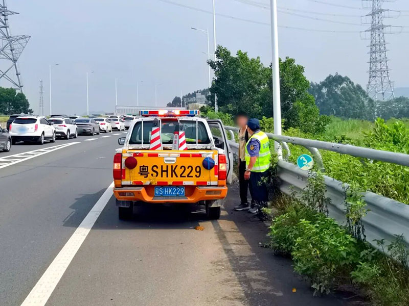 國(guó)慶假期莞番高速東行路段車流密集,路政員賴建輝駕駛巡邏車,和副駕駛張志威在執(zhí)行日常巡邏任務(wù)。二人突然發(fā)現(xiàn)右側(cè)應(yīng)急車道護(hù)欄邊,一名背著書包的少年正在高速公路應(yīng)急車道邊緣行走,情形十分危險(xiǎn)。