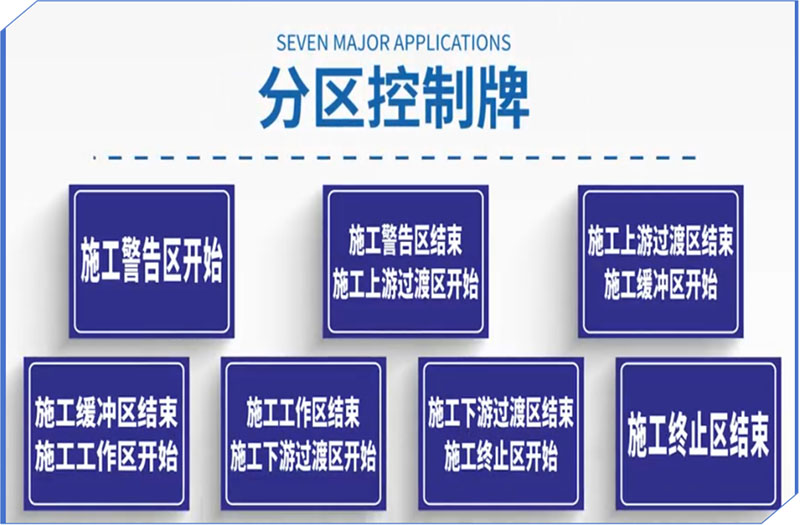 項目嚴格依據(jù)行業(yè)規(guī)范,將施工現(xiàn)場劃分為六大作業(yè)區(qū),分別為施工警告區(qū)、上游過渡區(qū)、緩沖區(qū)、工作區(qū)、下游過渡區(qū)、終止區(qū)。各區(qū)域均按標準懸掛分區(qū)控制牌,明確界定范圍,確保分區(qū)管控方案落地見效,顯著提升了施工區(qū)域安全管理的有序性。