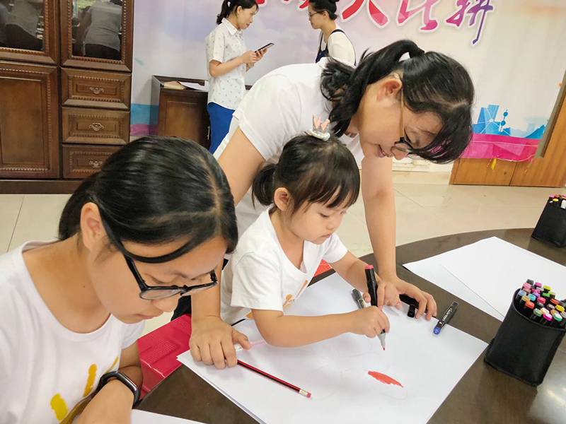 2018年8月27日,東莞控股公司舉行暑期親子活動(dòng),親子共同繪畫。
