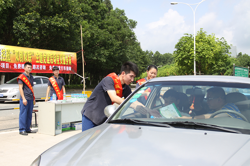 2015年5月29日,東莞控股公司開展“機關(guān)服務(wù)型”黨組織創(chuàng)建活動,在沿線收費站設(shè)置黨員服務(wù)崗。