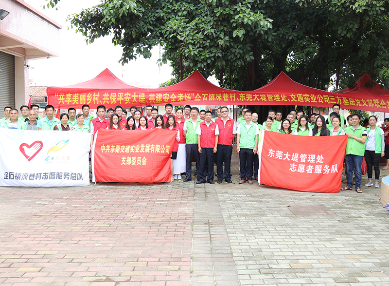 2018年6月15日,交通實業(yè)公司黨支部聯(lián)合東莞大堤管理處黨支部、企石鎮(zhèn)深巷村黨工委,在深巷村公園開展主題為“共享美麗鄉(xiāng)村、共保平安大堤、共建安全考場”的黨建共建活動。