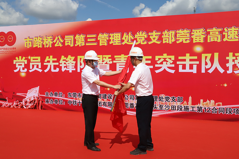 2021年7月13日,市路橋公司第三管理處黨支部莞番高速建設(shè)項目開展黨員先鋒隊暨青年突擊隊