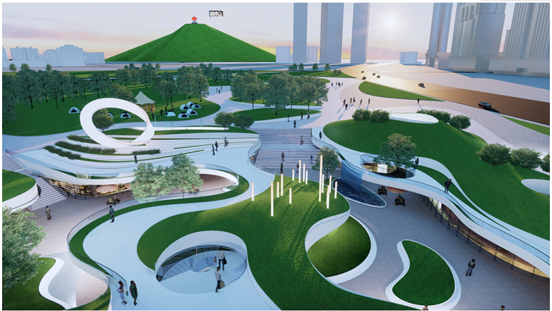 該項目毗鄰道滘站,以水鄉(xiāng)城市為設(shè)計理念,結(jié)合軌道場站與周邊濱水環(huán)境,建立城市與綠地無縫銜接、綜合交通充分融合、生活配套完善的立體空間,打造交通、綠化、商業(yè)、居住及教育一體化的新型城市活力中心。