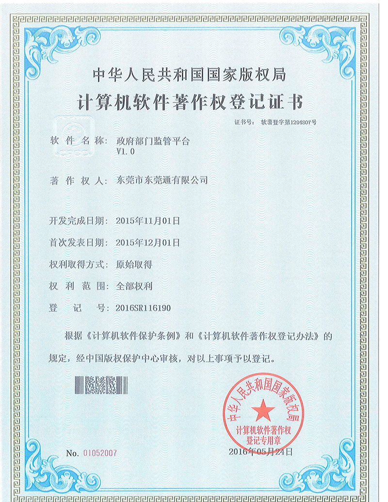 東莞通公司專利-政府部門監(jiān)管平臺V1.0
