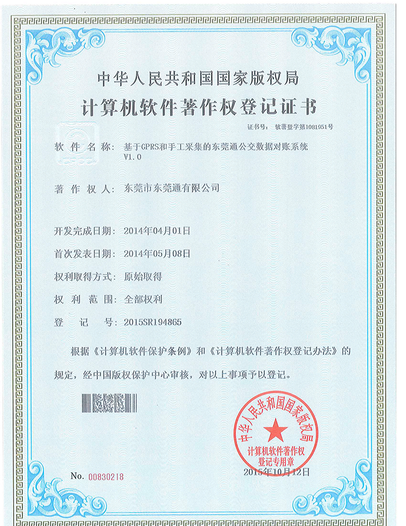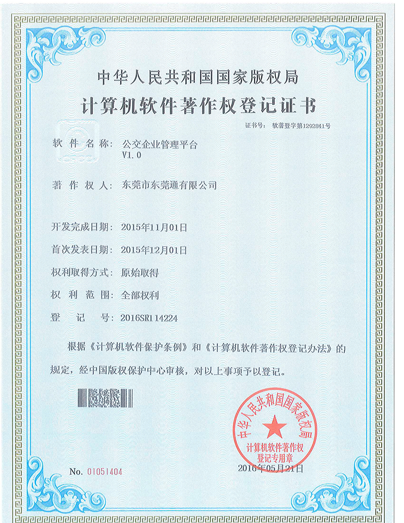 東莞通公司專利-東莞市智能公交管理平臺V1.1