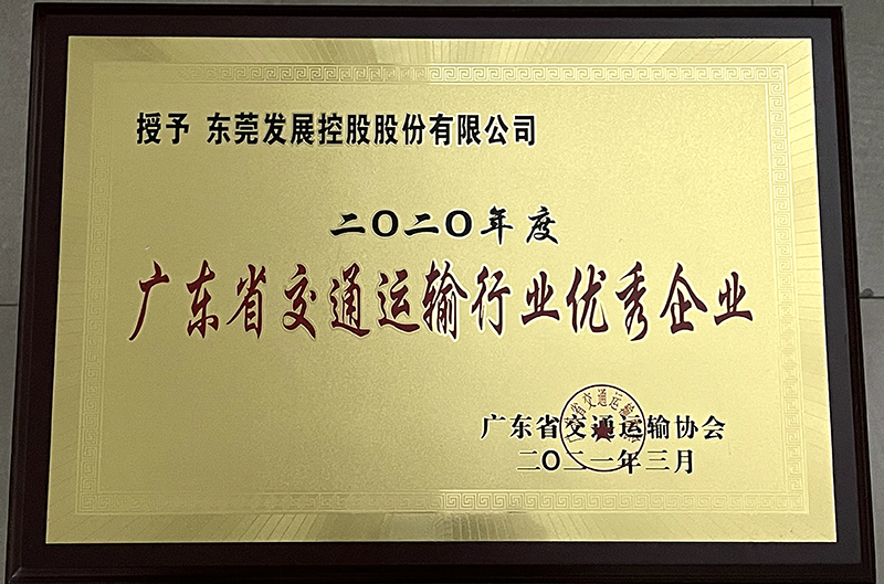 2021年3月,東莞控股公司獲二〇二〇年度廣東省交通運輸行業(yè)優(yōu)秀企業(yè)