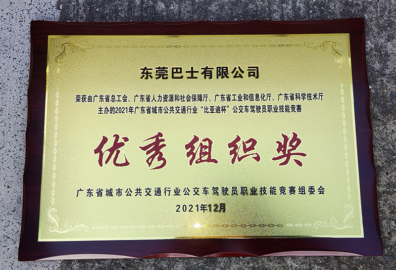 東莞巴士公司榮獲2021年廣東省城市公共交通行業(yè)“比亞迪杯”公交車駕駛員職業(yè)技能競賽優(yōu)秀組織獎